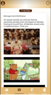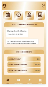 Bohra CRM is a community that notifies users about community events, allows them to book community halls, reserves seats for food delivered to their homes by and for the community, and has provided FMB for the last ten years. Additionally, users can view family members under the 'My Family' option. Each family/HOF will be given an account to access these features. We offer various payment options, and the payment section is used to pay service charges or Jamaat donations. We support online payments; users can obtain a receipt from the receipt section. Furthermore, we have a reporting system for users, including a due payment section where users can view their previous outstanding payments...